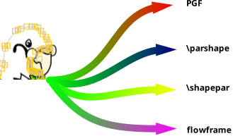 The function works by creating horizontal scan lines that pass through the shape at vertical intervals given by the baseline skip value. This means that you need to remember to set the normal font size first to match that used in your document. Each of the predefined set of normal font sizes is associated with the appropriate \baselineskip value. The shapepar package later introduced \Shapepar which has the same syntax as \shapepar. You can choose which command to write to the file. (Even more recently, \cutout has been added to shapepar but that’s not supported by JpgfDraw.)